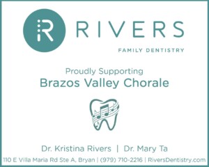 Thank you for your interest in the Brazos Valley Chorale. We are pleased to share with you the details of our upcoming concert season, A Season of Song: Traditions Old and New. We are making tickets extremely affordable this season. Ticket sales are available through the “Concert Information” link in our main menu above. By making the concerts more affordable, though, we are asking for your support through a generous donation, using one of the three options you will find at the bottom of this page. And remember, the Brazos Valley Chorale is a 501(c)(3) nonprofit organization, so any amount you donate is tax deductible.